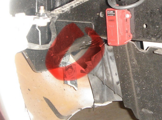 We emailed our vendor a photo of the AMB transponder mounted in my Miata and asked where he’d mount a Westhold hardwired transponder. He suggested: It could be mounted in the circled area.